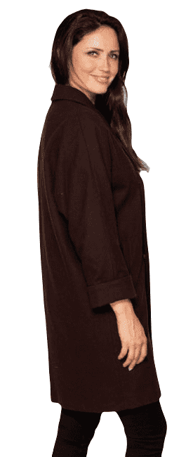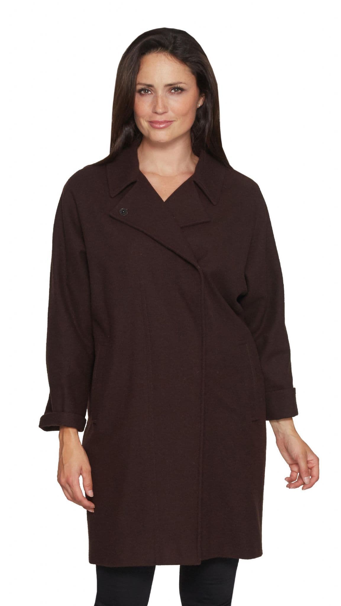 Womens 100% Chocolate Brown Merino Wool Cocoon Coat K1441