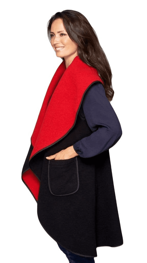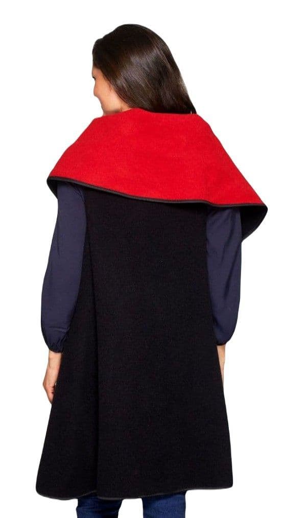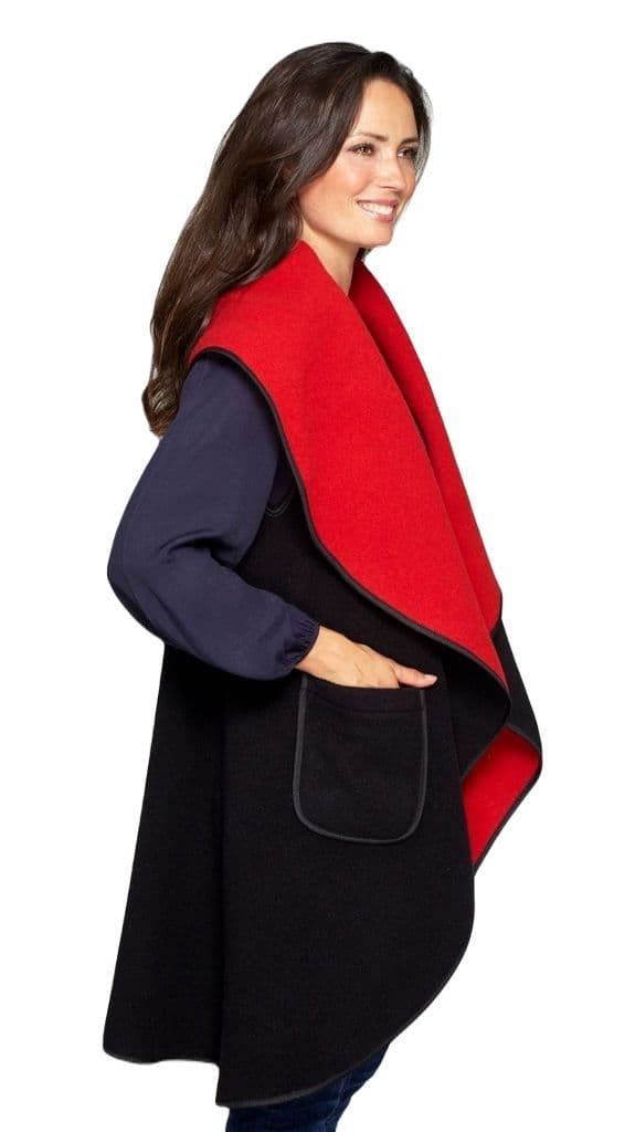 Womens Black/Red Wool Mix Reversible Sleeveless Wrap Coat K1660R